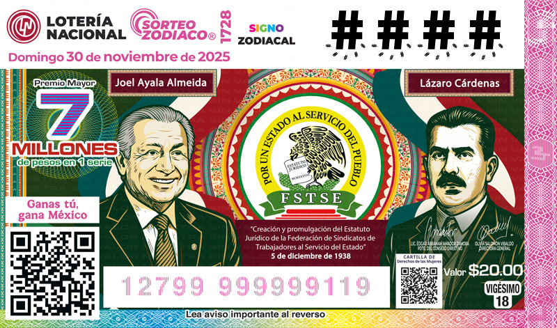 La emisión de un billete con motivo de la conmemoración del 87 Aniversario de la creación y promulgación del "Estatuto Jurídico de la Federación de Sindicatos de Trabajadores al Servicio del Estado" de 1938 por el General Lázaro Cárdenas del Río, a efecto de reconocer la importancia de esta fecha que representa un hito histórico en la consolidación de los derechos laborales y la organización sindical en México, al establecer un marco jurídico que fortaleció la representación de los trabajadores del sector público. Aspectos más destacados o cualidades que distingue a los personajes: General Lazaro Cárdenas del Río, destacó por su compromiso con los derechos laborales y la organización de los trabajadores del sector público, siendo una figura clave en la creación y promulgación del Estatuto Jurídico de los Trabajadores al Servicio del Estado (FSTSE). Su visión de justicia social y laboral, lo llevó a promover políticas que fortalecieron los derechos de los trabajadores, considerando al sector público como pilar del desarrollo nacional. Su ideología de justicia social buscaba garantizar condiciones dignas para los empleados gubernamentales. Durante su gobierno, fomentó la creación de la Federación de Sindicatos de Trabajadores al Servicio del Estado (FSTSE) en 1938, unificando a los trabajadores del sector público para negociar colectivamente y defender sus derechos y bajo su administración, se promulgó el Estatuto Jurídico de los Trabajadores al Servicio del Estado, un marco legal que reguló las condiciones laborales de los empleados públicos, estableciendo derechos como estabilidad laboral, salarios justos, prestaciones y procedimientos para conflictos laborales. Su legado en la burocracia mexicana con la creación del Estatuto Jurídico y la FSTSE consolidaron un sistema de relaciones laborales que perduró por décadas, sentando las bases para la profesionalización y protección de los trabajadores del sector público y que al tiempo fortalecía la estructura del Estado mexicano. Joel Ayala Almeida, (20 de diciembre de 1946 - 27 de enero de 2025) fue un destacado sindicalista y político mexicano, originario de San Luis Rio Colorado, Sonora. Su trayectoria se forjó en el ámbito académico, político y obrero, convirtiéndose en una figura emblemática del sindicalismo mexicano durante más d e tres décadas. Egresado como licenciado en Economía de la Universidad Nacional Autónoma de México (UNAM), inició su carrera en el sector público y sindical a finales de los años 70. En 1978, asumió la presidencia de la Comisión de Afiliación de la Federación de Sindicatos de Trabajadores al Servicio del Estado (FSTSE), organización que agrupa a más de un millón de trabajadores del Estado en dependencias federales. Posteriormente, ocupó diversos cargos directivos en el Sindicato Nacional de Trabajadores de la Secretaría de Salud (SNTSA), donde escaló hasta convertirse en su Secretario General entre 1995 y 1998. En el ámbito legislativo, fue diputado federal en tres ocasiones (incluyendo la LX Legislatura por representación proporcional) y senador en dos periodos (notablemente en la LXII Legislatura), donde se desempeñó como un negociador hábil en comisiones relacionadas con el trabajo y la administración pública. Ayala Almeida se destacó como un referente en la negociación colectiva, impulsando convenios que garantizaron prestaciones, salarios y estabilidad laboral para miles de burócratas federales. Bajo su dirección, la FSTSE participó activamente e n foros tripartitas con el gobierno y empresarios, abogando por la unidad sindical y la protección de los derechos de los trabajadores públicos. FSTSE La Federación de Sindicatos de Trabajadores al Servicio del Estado (FSTSE) es una organización sindical mexicana fundada el 29 de octubre de 1938 durante el gobierno de Lázaro Cárdenas del Río. Representa a los trabajadores del sector público federal, agrupando a diversos sindicatos de empleados de dependencias gubernamentales, como secretarías, institutos y organismos descentralizados. Su propósito principal es defender los derechos laborales, negociar condiciones de trabajo justas y promover la estabilidad y profesionalización de la burocracia mexicana. La FSTSE surge en el contexto de las reformas sociales cardenistas, que buscaban fortalecer el sindicalismo y garantizar derechos laborales a través del Estatuto Jurídico de los Trabajadores al Servicio del Estado, promulgado el 5 de diciembre de 1938. Este marco legal reguló las relaciones laborales entre el Estado y sus trabajadores, estableciendo derechos como estabilidad laboral, salarios dignos, prestaciones y mecanismos para resolver conflictos. Escudo/Logo de la FSTSE Está integrado por varios elementos clave con significado Balanza: Simboliza la justicia, la equidad y la búsqueda de igualdad en las condiciones laborales y de los derechos d e los trabajadores. Orla de Laureles: Representa el triunfo, la gloria y el éxito alcanzado a través de las luchas y esfuerzos sindicales Libro Abierto: Indica el conocimiento, la educación, la capacitación y la constante superación de los trabajadores del servicio público.