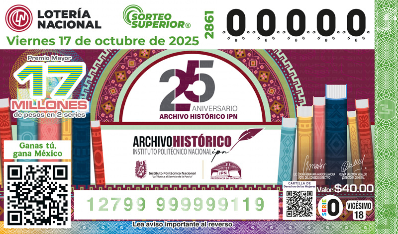 Celebrado en el “Salón de Sorteos del Edificio Edison de Lotería Nacional” Fecha: viernes 17 de octubre de 2025 Horario: 20:00 horas. Puedes seguir la transmisión en vivo del sorteo a través de nuestro canal oficial de YouTube: https://www.youtube.com/user/VideotecaLotenal